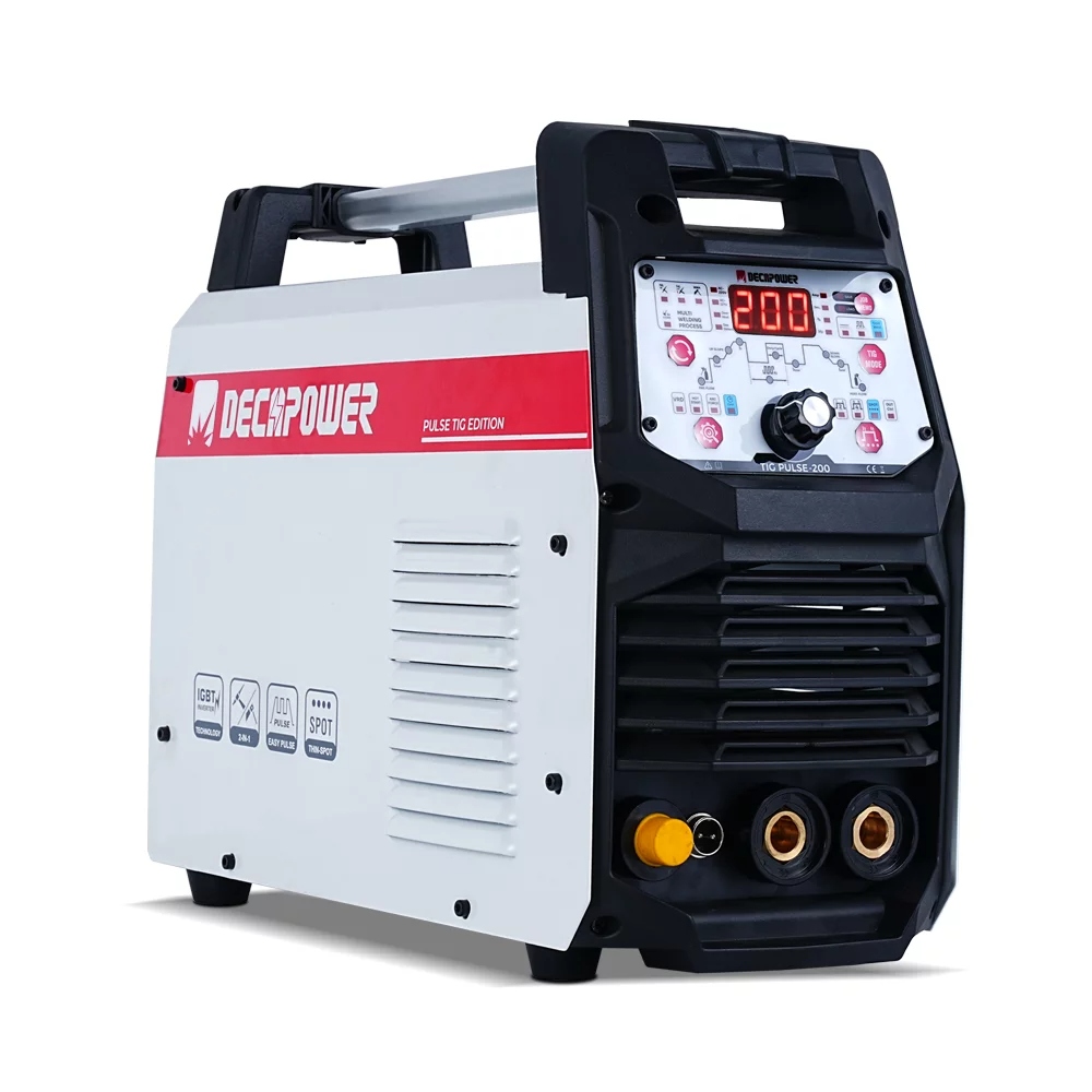 Decapower supports this demand for precision with its dedicated DC TIG product line. A prominent example is the PULSE TIG 200 AMP TIG Inverter Welding Machine. This inverter-based, full bridge micro-process control portable welding machine is specifically designed for TIG DC welding. It offers multiple arc strike options including PULSE, High Frequency (HF), or LIFT strike, providing exceptional arc starting and stability. These features empower welders to achieve extremely clean, strong, and visually appealing welds, making it ideal for industries such as aerospace, medical device manufacturing, and high-end artistic fabrication, where direct current applications require deep penetration and precise bead control. Our HF TIG series also provides excellent options, supporting 2T/4T welding modes and adjustment of down slope and post-gas time for enhanced control.