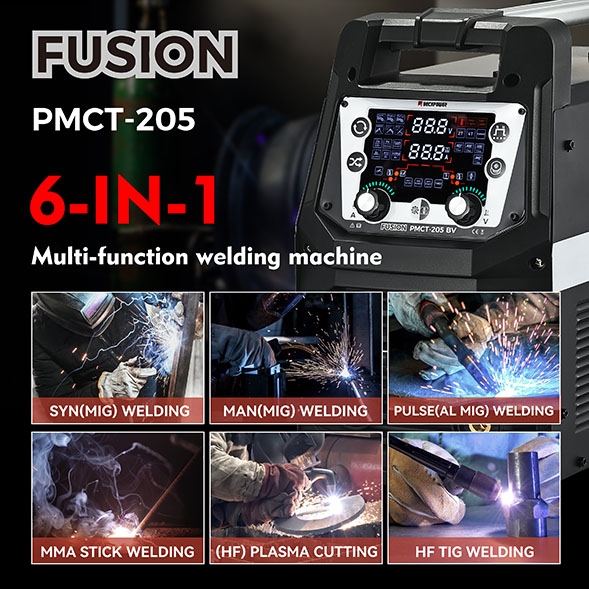 If you are looking for the ultimate cost-saver, the FUSION PMCT-205 is the answer. It is a CE compliant MMA / MIG / TIG welder that also includes a powerful plasma cutting function.